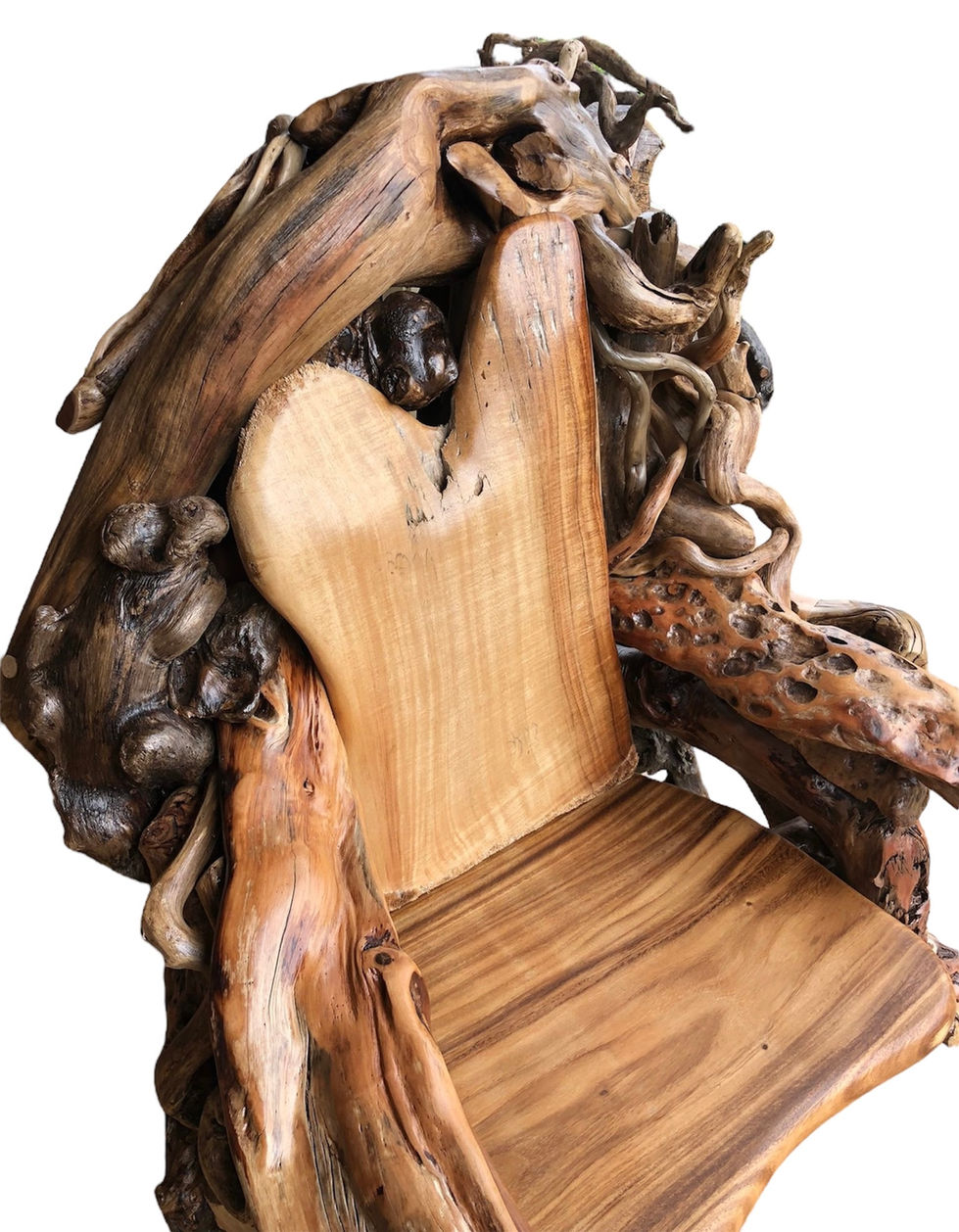 From slab-style throne chairs to carved tree trunks, and even custom chairs sculpted from tree roots - each piece is a truly one-of-a-kind design.
